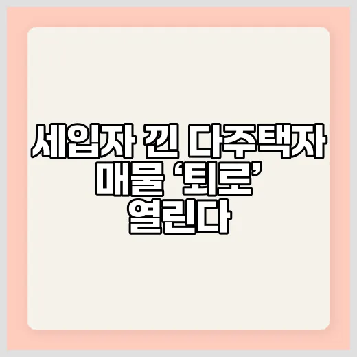 안녕하세요! 오늘은 다주택자 분들이 가장 궁금해하시는 세입자 낀 매물과 관련된 이야기를 함께 나눠보려고 해요. 특히, 정부의 정책 변화와 부동산 시장의 흐름 속에서 어떻게 매도 전략을 세워야 할지, 그리고 퇴로를 열어줄 수 있는 방법들을 상세히 설명드릴게요. 지금의 부동산 시장은 정말 빠르게 변하고 있어서, 어떤 선택이 유리한지 혼란스럽기도 하죠. 하지만 걱정 마세요! 차근차근 하나씩 살펴보면 분명히 도움이 될 거예요.