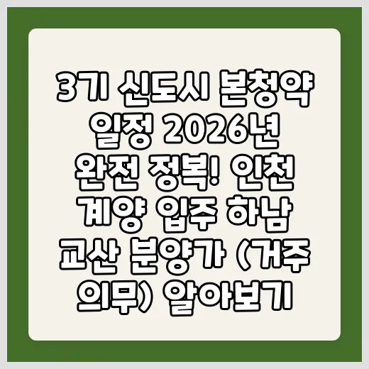 안녕하세요! 오늘은 2026년에 예정된 3기 신도시 본청약 일정과 관련된 중요한 정보를 함께 살펴보려고 해요. 특히 인천 계양, 하남 교산, 그리고 그 주변 지역의 분양가와 거주 의무 조건까지 상세하게 분석해 드릴게요. 내 집 마련의 꿈을 꾸는 많은 분들이 기다리고 있는 이 시기, 어떤 전략으로 준비하면 좋을지, 친절하게 설명드리니 끝까지 함께 해주세요. 지금부터 2026년 신도시 본청약의 핵심 포인트와 실질적인 혜택, 그리고 꼭 알아야 할 규제 사항까지 차근차근 안내해 드리겠습니다.