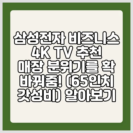 안녕하세요! 오늘은 매장 분위기를 확 바꿔줄 수 있는 최고의 선택, 바로 삼성전자 4K TV와 65인치 TV 추천에 대해 자세히 이야기해보려고 해요. 특히 카페, 식당, 병원 같은 다양한 비즈니스 매장에서 어떻게 활용하면 좋을지, 그리고 왜 비즈니스 매장 TV로서 최고의 선택인지 함께 살펴보도록 할게요. 처음에는 조금 복잡하게 느껴질 수도 있지만, 차근차근 이해하면 정말 쉽고 빠르게 결정할 수 있으실 거예요. 자, 그럼 시작해볼까요?