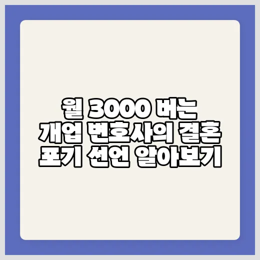 월 3000만 원 버는 개업 변호사가 결혼 포기를 선언하는 이유는 무엇인가요?