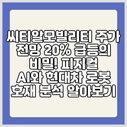 안녕하세요! 오늘은 씨티알모빌리티 주가가 최근 급등한 이유와 그 배경에 숨겨진 이야기들을 친근하게 풀어볼게요. 혹시 요즘 주식시장에 관심이 많거나, 특히 피지컬 AI와 현대차 로봇 관련 소식을 놓치지 않으려고 애쓰는 분들이라면, 이 글이 큰 도움이 될 거예요. 시장의 흐름을 자연스럽게 이해하면서도, 앞으로 어떤 방향으로 흘러갈지 함께 고민해보는 시간 가져보도록 해요. 자, 그럼 시작해볼까요?