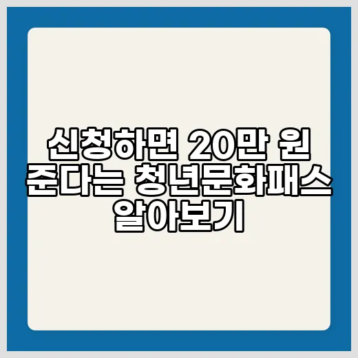 요즘은 청년들을 위한 다양한 혜택과 지원 정책이 쏟아지고 있는데요, 그중에서도 특히 눈에 띄는 것이 바로 청년문화패스입니다. 혹시 ‘신청하면 20만 원이 준다?’라는 말 들어보셨나요? 오늘은 이 청년문화패스에 대해 자세히 알아보고, 어떻게 신청하는지, 어떤 혜택이 기다리고 있는지 친절하게 설명드릴게요. 문화생활을 즐기면서도 부담 없이 사용할 수 있는 이 제도, 놓치지 마세요! 함께 살펴보면 분명 여러분의 일상에 작은 기쁨이 될 거예요.