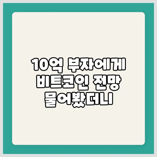 안녕하세요! 오늘은 10억 부자들이 바라보는 비트코인 전망에 대해 함께 이야기해보려고 해요. 요즘 투자 시장이 참 뜨겁잖아요? 특히나 암호화폐, 즉 비트코인이 많은 부자들의 관심을 끌고 있는데요. 이번 포스팅에서는 부자들의 암호화폐 전망, 비트코인 가격 예측, 그리고 10억 부자 비트코인 투자 분석까지, 아주 자세하고 친절하게 설명드릴게요. 어려운 용어도 쉽게 풀어서 이해하기 쉽도록 하니, 걱정 마시고 천천히 읽어보세요!