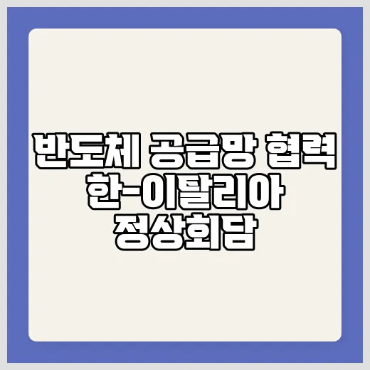 안녕하세요! 오늘은 한국과 이탈리아가 이번 정상회담에서 맺은 중요한 협력 내용, 특히 반도체 공급망과 관련된 경제적 실익과 그 파급 효과에 대해 친근하게 이야기해보려고 해요. 최근 글로벌 공급망이 불확실성 속에서 흔들리면서, 우리나라가 어떤 전략으로 대응하고 있는지 궁금하신 분들이 많으실 텐데요. 이번 정상회담은 단순한 외교 행사 그 이상으로, 한국의 미래 성장 동력을 책임질 핵심 산업인 반도체 분야에서 큰 변화를 예고하고 있답니다. 자, 이제 함께 자세히 살펴볼까요?