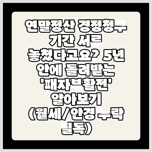 일명 '패자부활전'이라고 불리는 이 제도는, 연말정산 후 기간 내에 놓친 공제 항목들을 5년 이내에 경정청구를 통해 다시 신청하여 환급받는 방법입니다. 특히 월세, 안경 구매 등 누락된 서류를 보완하여 신청하면 환급 기회를 얻을 수 있습니다.