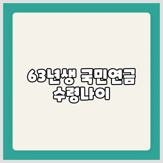63년생의 국민연금 수령 나이는 만 60세부터 시작됩니다. 즉, 2023년 기준으로 만 60세에 해당하는 해에 연금을 신청할 수 있으며, 이는 출생 연도에 따라 다소 차이가 있을 수 있습니다.