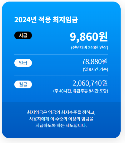 2024년도 최저임금 9860원을 바탕으로 각 기간별로 계산했을때 산출되는 가격을 알아볼게요