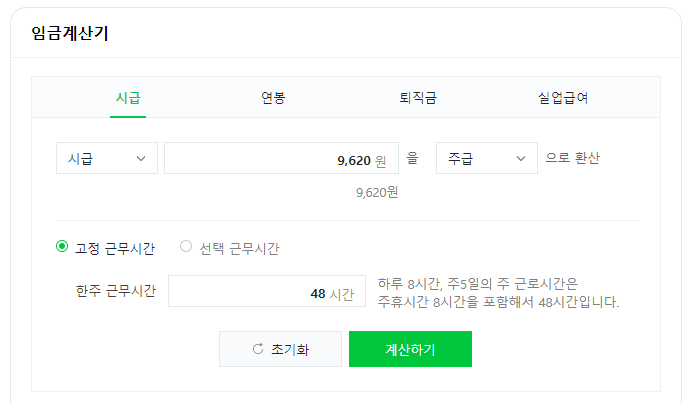 최저임금 계산기를 통해서 내가받을 수 있는 최저임금의 수준과 시간을 정해서 계산해볼 수 있습니다.