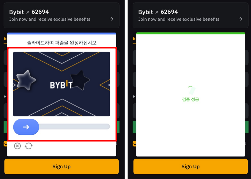 이어서 퍼즐맞추기로 간단한 인증절차를 거쳐주시구요