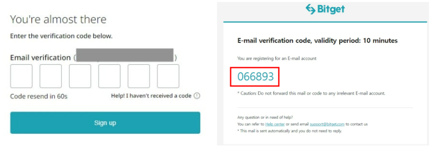 - 메일함에서 인증코드를 확인하고, 비트겟 화면에 코드를 입력합니다