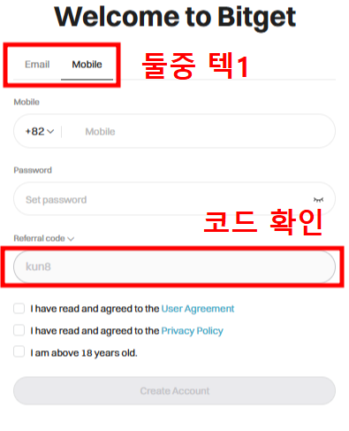 - 추천 코드(kun8)가 있다면 입력하면 수수료 할인 혜택을 받을 수 있습니다 (필수입력)