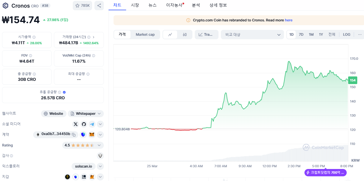 📈크로노스(CRO) 현재 시세 및 데이터 상세 분석