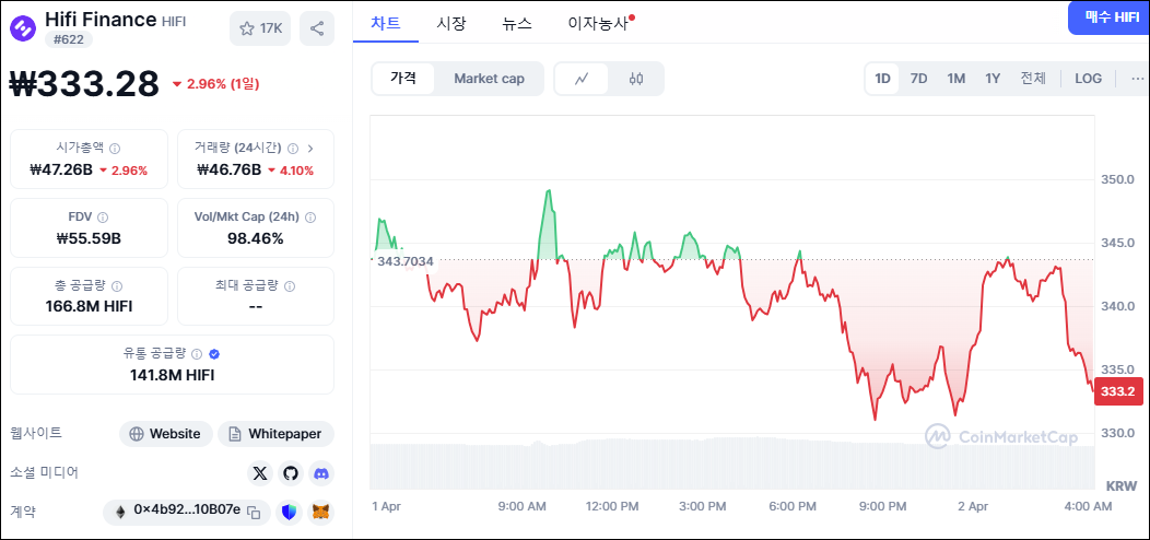 하이파이 코인은 업비트 외에도 여러 글로벌 거래소에 상장되어 있지만, 업비트에서 차지하는 거래량 비중이 상당히 큽니다. 이를 바탕으로 하이파이 코인의 현황을 표로 정리해 보겠습니다.