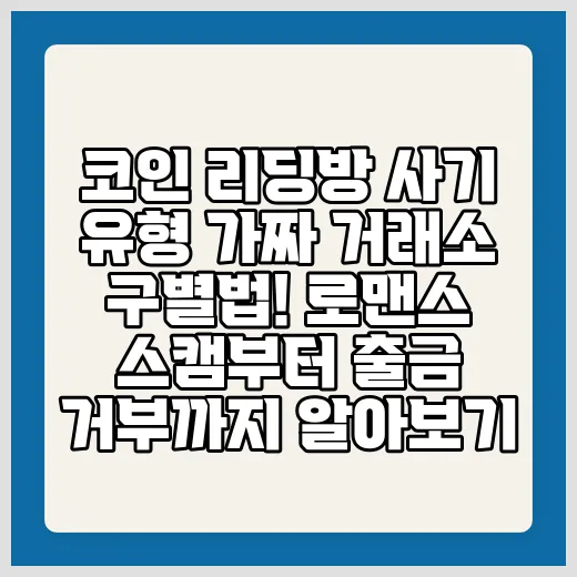 안녕하세요! 오늘은 많은 분들이 궁금해하실 코인 리딩방 사기와 관련된 중요한 정보를 쉽고 친절하게 알려드릴게요. 암호화폐 투자를 하다 보면, 믿을 만한 정보와 그렇지 않은 곳이 어디인지 구별하는 게 정말 어려운 일이죠. 특히 가짜 거래소 구별법, 로맨스 스캠, 그리고 출금 거부와 같은 사기 수법은 자칫하면 큰 피해로 이어질 수 있어요. 오늘 이 글을 통해 그런 위험들을 미리 알고 예방하는 방법을 차근차근 설명드릴게요. 처음에는 복잡하고 어려워 보여도, 차근차근 따라오시면 누구든 쉽게 이해할 수 있도록 정리했으니 끝까지 읽어주세요! 자, 이제부터 진짜 위험한 사기 유형과 그 대처법에 대해 함께 알아보도록 할게요.