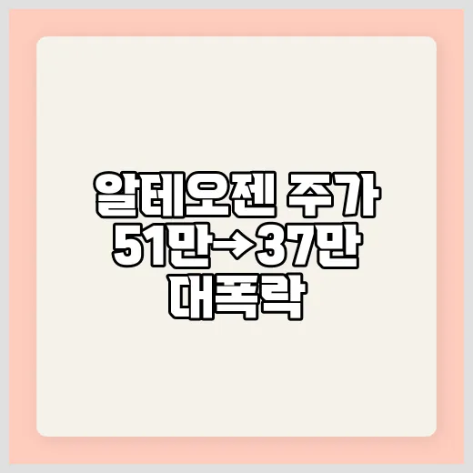 알테오젠 주가가 51만 원에서 37만 원으로 급락한 주요 원인은 무엇인가요?